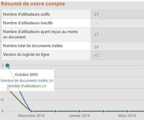 La page de résumé et de statistiques contient un lien vers un pdf téléchargeable. Il s’agit d’un document généré automatiquement et qui résume les chiffres mensuels. Le lien vers ce document est actif durant 1 mois, passé ce délai, un nouveau résumé du mois écoulé suivant devient disponible